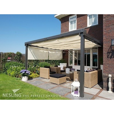 Shrnovací baldachýn slouží jako variabilní zastínění terasy nebo pergoly. Posunuje se pomocí provázku po kovových lankách. Baldachýn je vyrobený ze tkaného, velmi odolného...