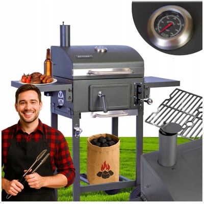 -Snadná montáž, přenosnost -Doporučené maximální množství dřevěného uhlí: 0,8 kg -Hmotnost: 3,5 kg -Výška grilování: 30 cm -Rozměry grilu: 44,5 x 30 cm - chrom -Rozměry po...