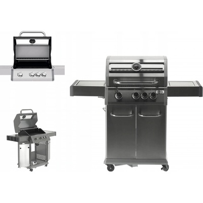 Rozměry grilu: 125 x 121 x 56,5 cm. Rozměry grilovací plochy: 48 x 44 cm (dvoudílný modulární rošt). Kapacita grilu pro 8 lidí. Hmotnost: 41,5 kg. Výkon: 11 kW. 2 nezávislé...