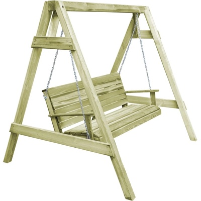 Dřevěná zahradní houpačka s béžovou stříškou. Vyrobena z borovicového dřeva (impregnované). Technické údaje: rozměry: 170 x 192 x 130 cm (v x š x h) výška opěradla: 68c m...