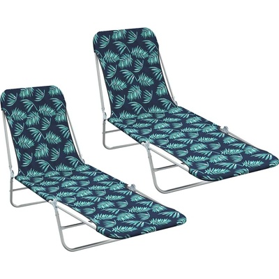 Dvě skládací lehátka pro bezstarostné dny venku — rychlé rozložení, pohodlné ležení a snadná údržba.