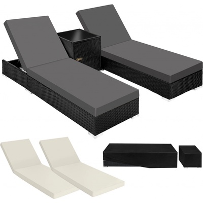 TecTake 401500 2 Ratanová zahradní lehátka hliníková se stolkem vč.