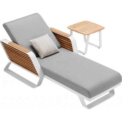 Stylové venkovní lehátko, které kombinuje pohodlí, praktičnost a odolnost pro pohodové chvíle relaxace.