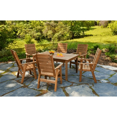 Pohodlné a pevné venkovní posezení z tepelně upraveného dřeva, které působí přirozeně a vydrží roky.