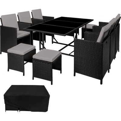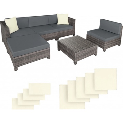 tectake 403835 zahradní ratanový nábytek s hliníkovým rámem vč. povlaků ve 2 barvách, varianta 2 šedá
