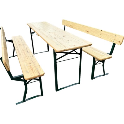 Pohodlný skládací pivní set pro čtyři s pevnou konstrukcí a rychlým skládáním — ideální na zahradní oslavy a posezení s přáteli.