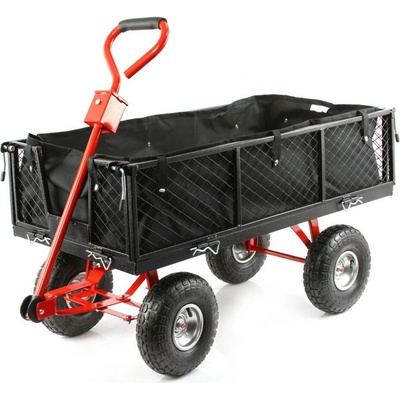 Tažný vozík se sklopnou korbou a nosností až 500 kg se může pochlubit odolnou konstrukcí i kvalitními nafukovacími koly, díky nimž se skvěle hodí i pro náročný terén.