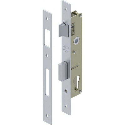 Zámek vložkový s převodem určený pro jedno a dvojkřídlé dveře pravé či levé. Vzdálenost mezi otvorem pro kličku a otvorem pro vložku je 90 mm, hloubka pro zadlabání je 80 mm....