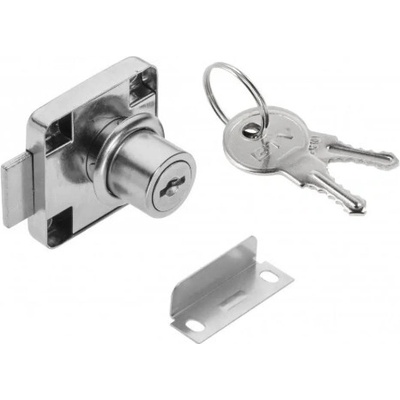 Čtyřhranný zadlabávací zámek v chromu. Univerzální použití pro kancelářský i domácí nábytek. Sada obsahuje 2 ocelové klíče.