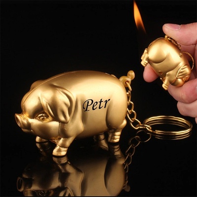 Originální zapalovač vyroben z kovu s oblíbeným piezo elektrickým zapalováním v motivu zlatého prasátka.Velikost: 6,3 x 3,5 x 2,5 cmVětruodolný