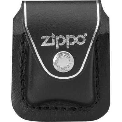 Černé kožené pouzdro na Zippo zapalovač s kovovou sponou na zavěšení na opasek.
