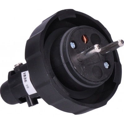 - 230 V / 16 A - přímá, do vlhka - IP44 - gumová protiskluzová rukojeť - kryt zásuvky + gumové těsnění - barva: černá