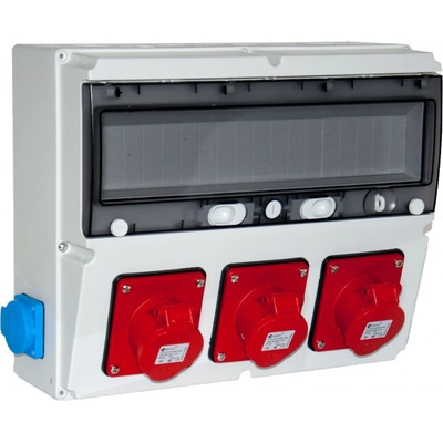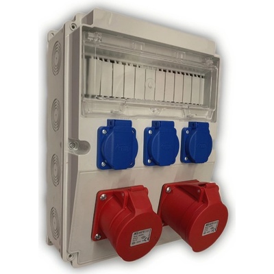 Zásuvková kombinace osazená 63528.20030 360x300x155mm 18 modulů Rozvodnice je osazená: 2x zásuvka vestavná 230V/16A 3x zásuvka vestavná 3f 32A 4 kolík Rozvodnice je nezapojena a...