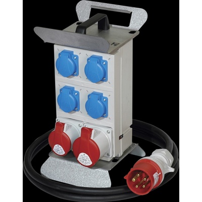Přenosná stojanová rozvodnice ROS 12 SD/FI-21/P s držákem, 1x3253+1x1653+4x230V, IP44, přívodní kabel 2,5m zakončený zásuvkou 3253 (32A 5-pól), rozměry 194x384x230 mm. Přenosné...