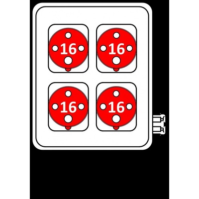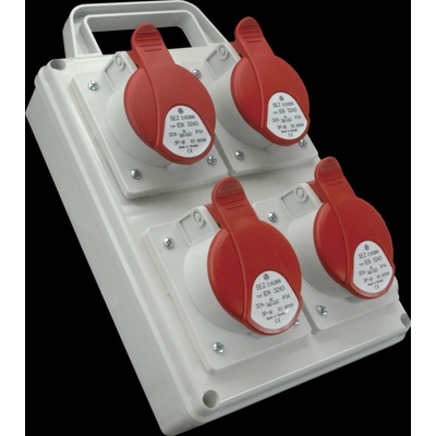 Zásuvková rozvodnice ROS 1600 s držákem se 4 zásuvkami 1643 (4-pól) 16 A pro 400V s krytím IP 44 pro připojení třífázových i jednofázových elektrických spotřebičů....