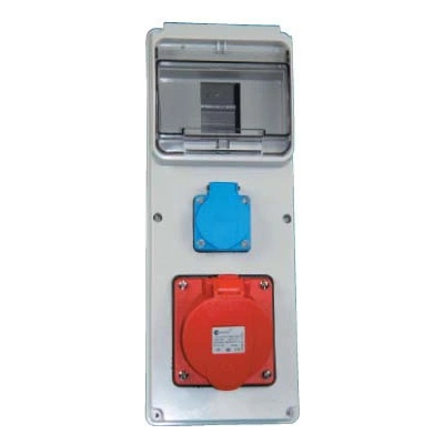 Zásuvková kombinace osazená 66011.10100 125 x 350 x 80/100 mm 6 modulů Rozvodnice je osazená: 1x zásuvka vestavná 230V/16A 1x zásuvka vestavná 16A 5 kolík Rozvodnice je...