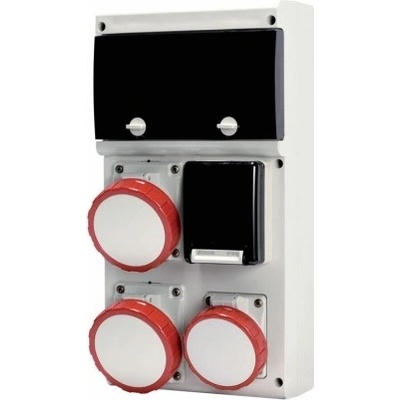 Zásuvková rozvodnice nejištěná, osazená zásuvkami, s prostorem pro jištění řady 636 4x zásuvka, krytí IP66. Osazení zásuvek: 2x 400V/32A/5p, 1x 400V/16A/5p, 1x 230V/16A