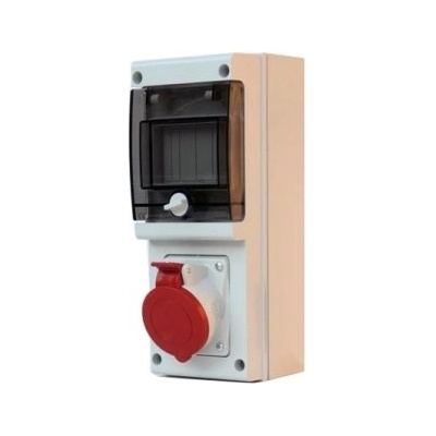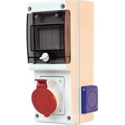 Zásuvková rozvodnice jištěná jističi řady ENERBOX 3x zásuvka. Osazení zásuvek: 1x 400V/16A/4p, 2x 230V/16A, osazené jištění:: 1x C16/3, 1x B16/1