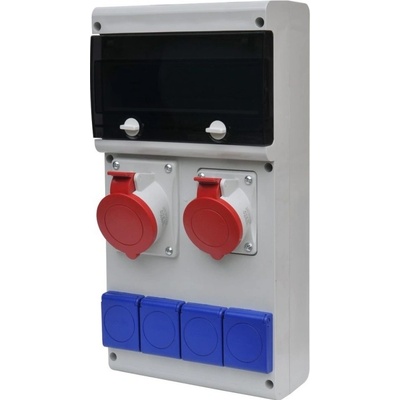 Zásuvková rozvodnice nejištěná, osazená zásuvkami, s prostorem pro jištění řady 632 7x zásuvka - zás.: 2x 400V/32A/4p, 2x 400V/16A/4p, 3x 230V/16A