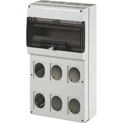Prázdná skříň SCAME, pro zásuvkové rozvodnice série DOMINO IP66. Pro jištění je k dispozici 16 modulů DIN a skříň má připravený 6x otvor pro zásuvky 16A nebo 32A typu...