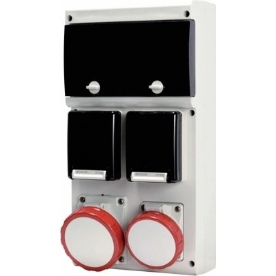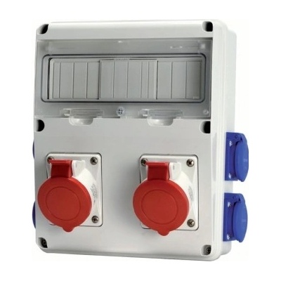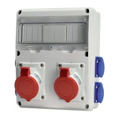 Zásuvková rozvodnice nejištěná, osazená zásuvkami, s prostorem pro jištění řady ENERBOX 4x zásuvka. Osazení zásuvek: 2x 400V/32A/5p, 2x 230V/16A