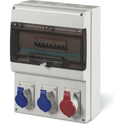 Zásuvková rozvodnice jištěná jističi řady 632 3x zásuvka - zás.: 1x 400V/16A, 2x 230V/16A, jištění: 1xC16/3, 1xB16/1