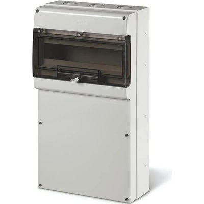 Prázdná skříň SCAME, pro zásuvkové rozvodnice série DOMINO IP66. Pro jištění je k dispozici 16 modulů DIN a skříň je bez připravených otvorů pro zásuvky.