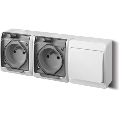 Venkovní dvojzásuvka s vypínačem č.6 Famatel 5327-21 GALATEA IP44 Zásuvka (bílá / průhledné víčko) v bílé barvě s transparentním víčkem s krytím IP44 pro venkovní instalaci a...
