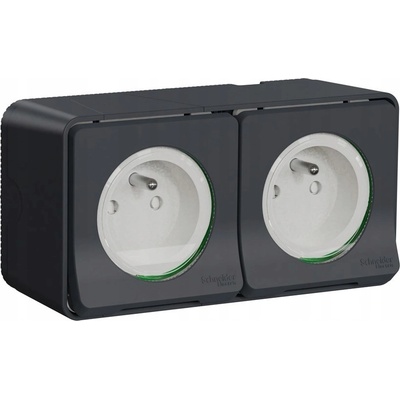 MUR36028 MUREVA Kompletní Zásuvka dvojitá 16A 2P+E, clonky, bezšr. IP55,antracit, Schneider Popis Mureva Styl zásuvka MUR36028 je robustní zařízení. Dvojitý francouzský 2P +...