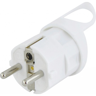 Klasická vidlice pro pohyblivý prodlužovací přívod v bílé barvě, určená pro výrobu prodlužovacích přívodů nebo jako náhradní díl.