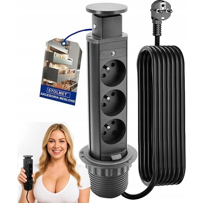 Zásuvka stolní vestavěná výsuvná, 3x zásuvka s uzemněním, alu, kabel 1,5m se zástrčkou. Výsuvná zásuvka, která perfektně zapadne do pracovní desky, v kuchyni nebo kanceláři....