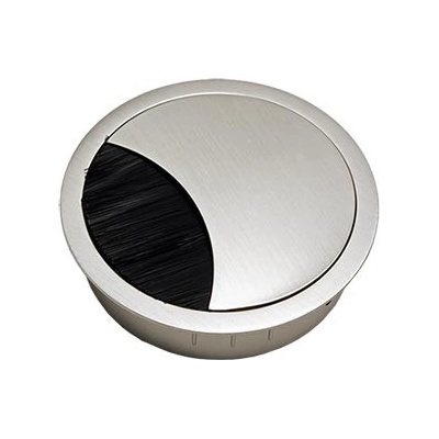 Kulatá průchodka do stolní desky s kartáčovým krytem.; Použití: Elegantní průchodka ze slitiny zinku a hliníku pro průchod kabeláže skrze desku stolu. Výřez v krytu krytky...