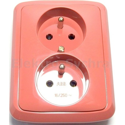 designová řada TANGO . popis : Zásuvka dvojnásobná s ochrannými kolíky; vřesová červená Vhodné pro designy z vypínačových řad ABB : T Objednací číslo : 5512A-2349 R2 Vysvětlení...