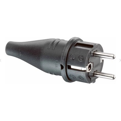 Vidlice /zástrčka/ 230V na kabel gumová 1419-190 16A/250V černá s kolíkem, pro 3x1,5mm2 - připojení L+N+PE, max. 3x1,5mm2 - 16A/250A - podle DIN 49440/441