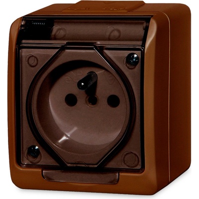 Venkovní jednoduchá zásuvka Famatel 5321-05 GALATEA IP44 Zásuvka (hnědá / průhledné víčko) v hnědé barvě s transparentním víčkem s krytím IP44 pro venkovní instalaci a montáží...