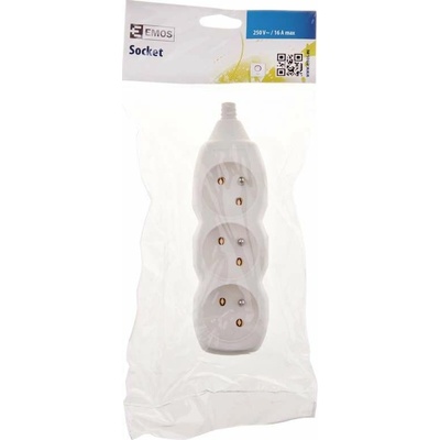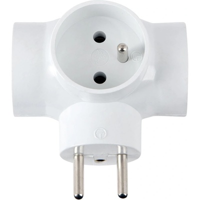 Rozbočka s trojicí zásuvek 16A. Napětí 250V, funkce připojení více zařízení k jedné elektrické zásuvce.