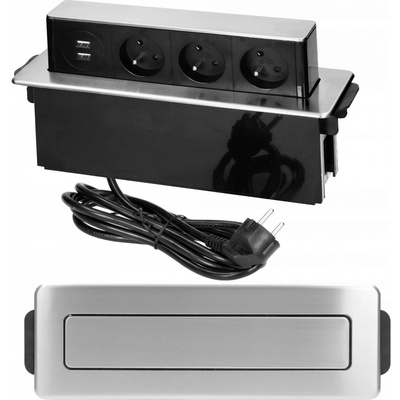 Sada tří elektrických zásuvek 2P+Z ve výsuvném horním krytu. Určeno pro vnitřní instalaci do stolů, stolových desek a stolků ve vertikální i horizontální poloze, přičemž...