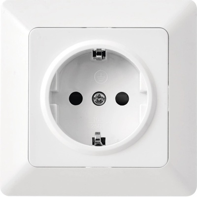 Produkt: Zásuvka jednonásobná SCHUKO, bílá Technické parametry: barva: bílá (lesk)design: SCHUKOkrytí: IP20napětí: 250 V~/16 A max.prodejní obal: 1 ks, závěsprodukt: zásuvka...