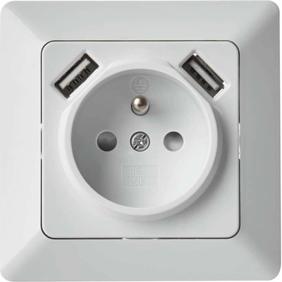 Zásuvka jednonásobná s ochranným kolíkem s USB nabíjením. USB výstup 5 V DC 2,1 A max. Vestavná hloubka 35 mm. Nelze používat k datovému přenosu.