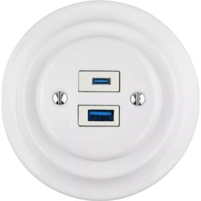 Keramická retro zásuvka USB jednonásobná v bílé barvě. 1x USB-C a 1x USB-A určené k nabíjení. Ručně vyráběná z kvalitní keramiky. Ideální do luxusních interiérů, moderních...
