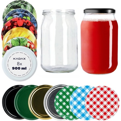 8 x SKLENICE 900 ml NA ZAVAŘENINY MED + ŠROUBOVACÍ VÍČKA 82 mmProč si koupit sklenice se šroubovacím uzávěrem KADAX? ➡ Sklenice značky KADAX kombinují funkčnost a estetiku a...