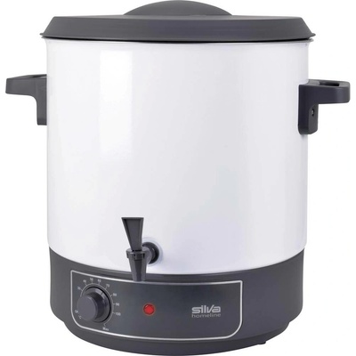 Zavařovací hrnec o objemu 27 l pojme až 14 zavařovacích sklenic. Má plynulý termostat a 120minutový časovač. Poslouží i jako termoska - nápoje, omáčky či polévky udrží horké.