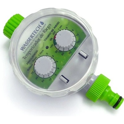 Wassertech water timer připojíte na vodovodní kohout (25mm) či šroubovací hadicovou spojku, spodní část má přípojku na hadici 16mm, nepotřebujete žádný přívod energie, časovač...