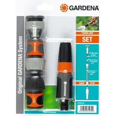 sada na zavlažování obsahuje šroubení pro vodovodní kohoutek se závitem s adaptérem, rychlospojku, stopspojku a čisticí postřikovač (18296-20)