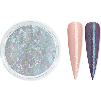 Kousky třpytivého prachu,který lze zamíchat do UVgelu,gel laku,akrylu či laku na nehty.Je ideální také pro dozdobení nehtů-glitter se aplikuje štětcem do výpotku.