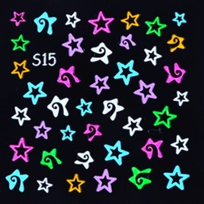 Samolepky na nehty NEON - S15 Krásné neonové samolepky na nehty s drobnými motivy jsou kreativním způsobem, jak ozdobit své nehty. Samolepky jsou fluorescentní a svítí pod UV...
