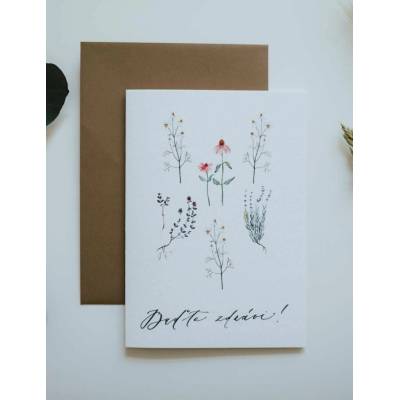 Be Nice ekologické přání "Buďte zdrávi" - s originálním designem českých bylinek. Originální motivy na přání vytvořila česká ilustrátorka Bára z Nikolajky.