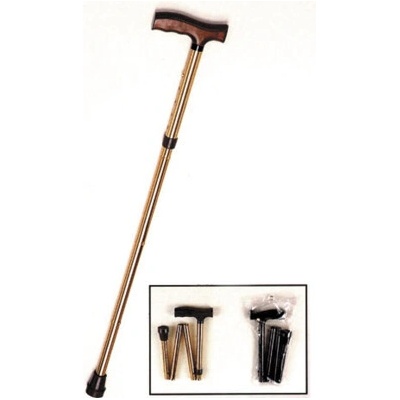 Lehká hliníková vycházková hůl s možností složení. Skládací hůl má nastavitelnou výšku, barva zlatá.