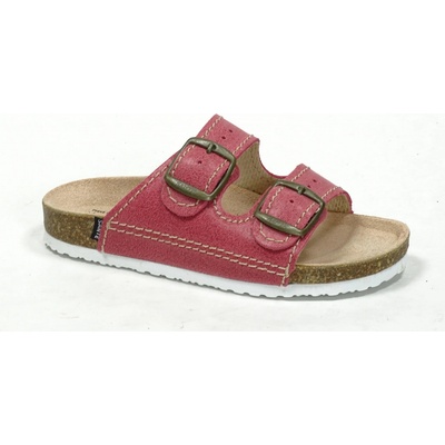 Kožené zdravotní žabky na léto, ušity z hladké kůže. Obsahují příjemně měkkou koženou stélku. Nechybí takzvané srdíčko pod přední částí chodidla. Přes nárt lze obuv utáhnout...
