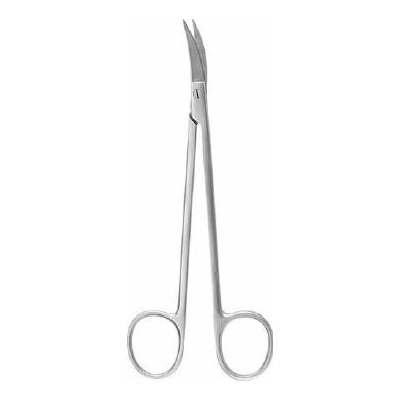 Chirurgické nůžky z kvalitního materiálu. Jedna čepel je ostře vybroušená a druhá zaoblená. Vhodné k preparaci a ke stříhání tkání.